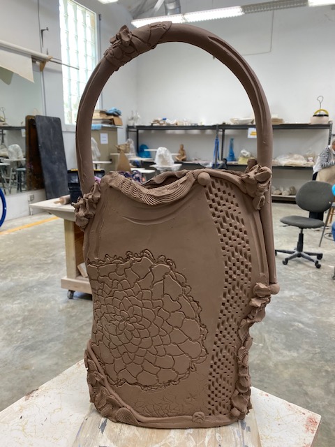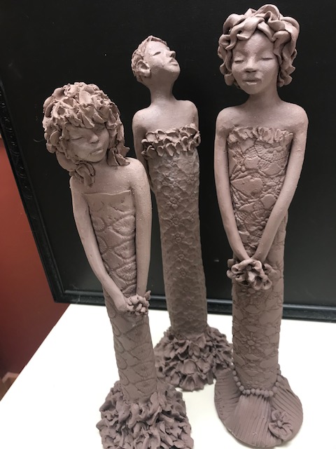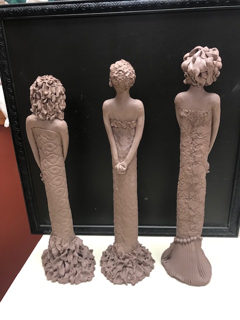 Right from my studio! These pieces are at my favorite stage…..just finished but still soft clay. If they could only stay this way, I would never finish them any further. But they need fired to become solid, which changes the entire composition. Enjoy them as they were created!